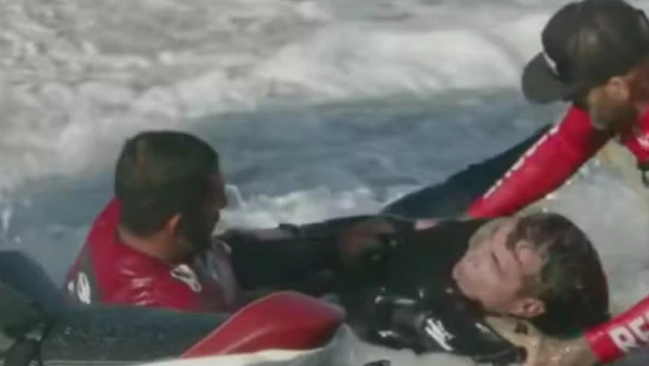 20 METROS Carlos Burle cai em onda gigante, quase se afoga e é resgatado por surfista brasileiro; veja